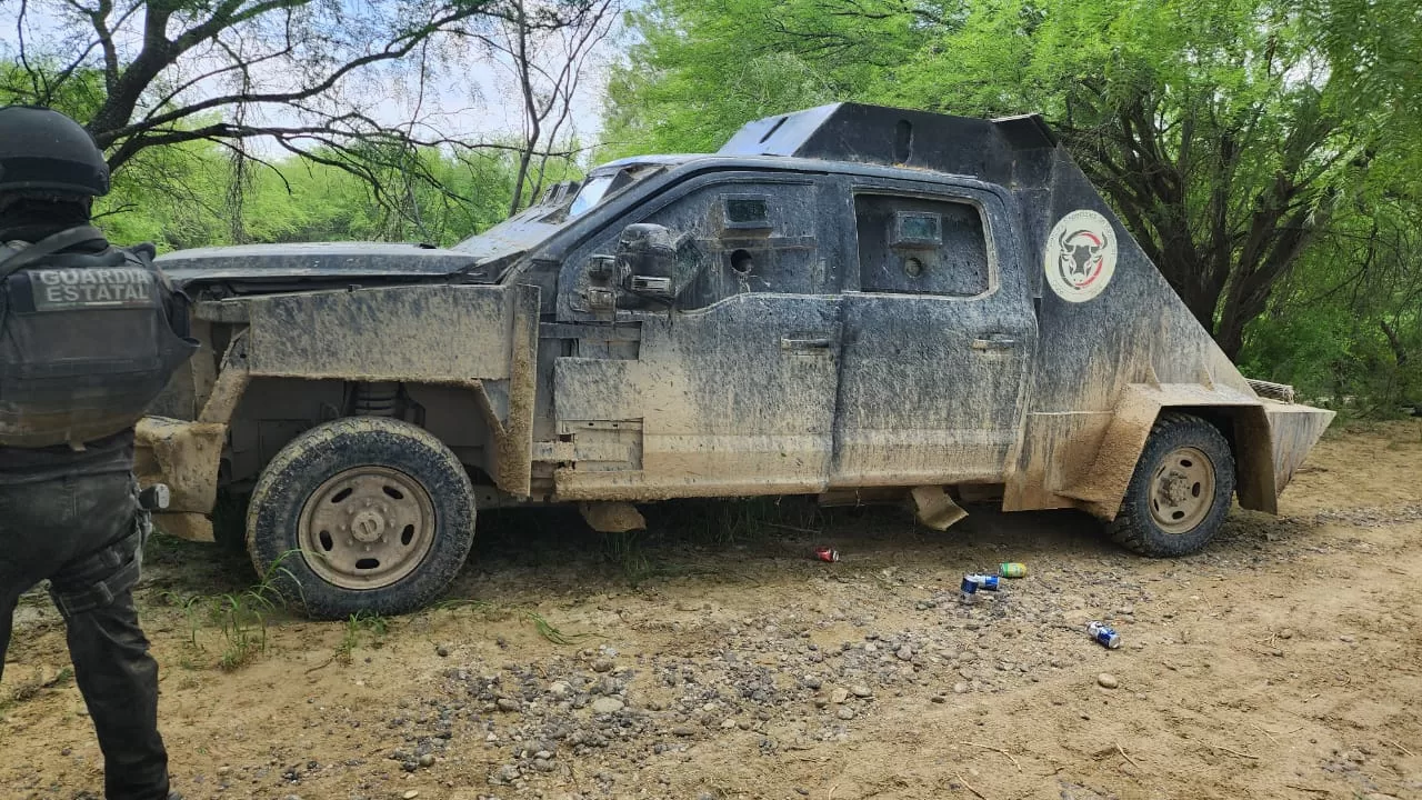 El vehículo tipo monstruo asegurado por la Guardia Estatal tenía la leyenda “Fuerzas Especiales de Reacción Grupo Toros”.