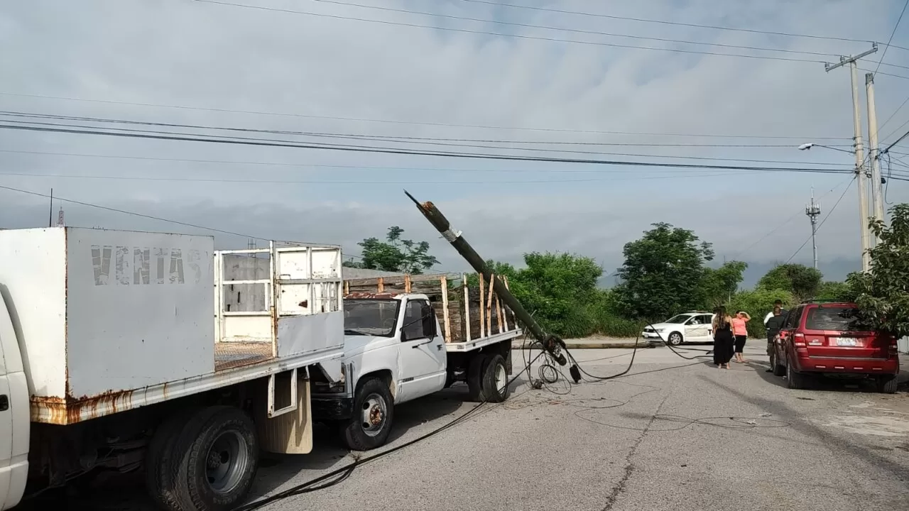 Agregaron las autoridades que uno de los postes cayó sobre unas redilas de una camioneta que está estacionada y otro más en el capacete de una Nissan cuya propietaria exigió que fueran reparados los daños.