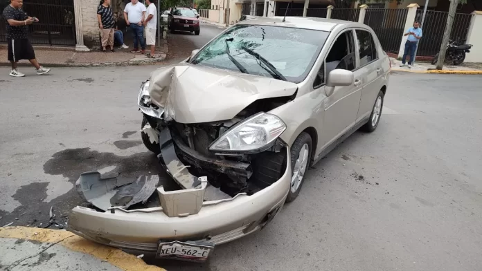 Presuntamente la unidad antes mencionada se desplazaba de oriente a poniente por Zaragoza y en el cruce del 18 al parecer omitió el alto chocando contra un Nissan Tida el cual al impacto se proyectó contra un domicilio.