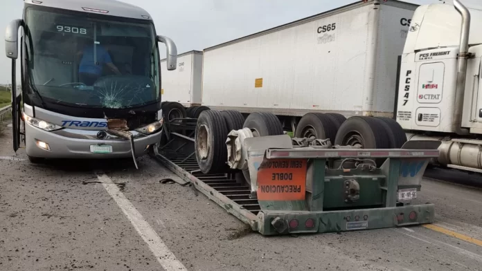 Según comentaron las autoridades los hechos ocurrieron cuando un tráiler de doble semirremolque golpeó la valla de contención de la carretera provocando que la segunda caja se desprendiera y volcara arrastrándose varios metros por el asfalto hasta chocar contra la parte frontal de un autobús de Transpaís que venía en circulación.