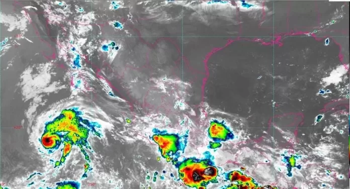 Una zona de baja presión con potencial ciclónico al sur de las costas de Oaxaca, así como inestabilidad en niveles altos, en combinación con la entrada de humedad del océano Pacífico, ocasionarán lluvias puntuales intensas en Oaxaca, Guerrero, Michoacán, Colima y Jalisco, así como lluvias puntuales fuertes en Nayarit, todas con descargas eléctricas.