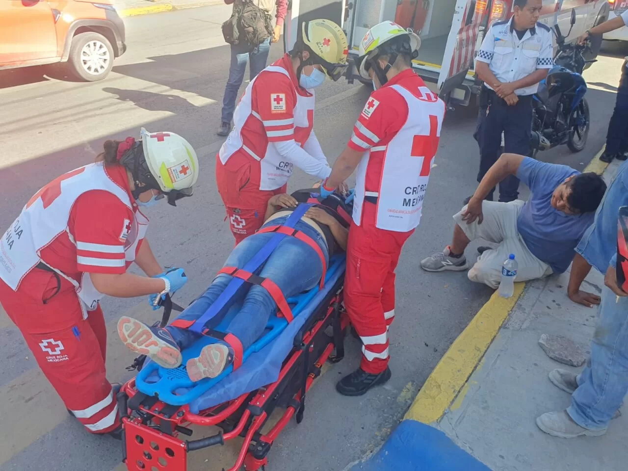 El accidente ocurrió en el ocho Bulevar Praxedis Balboa, lugar donde se trasladaron paramédicos de Cruz Roja para valorar a la pareja.