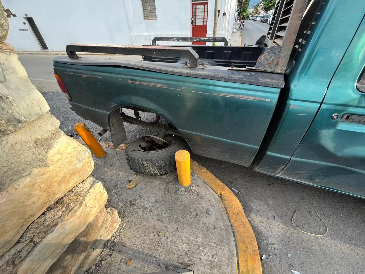 Presuntamente al llegar al cruce con el 18 rebasó el límite de alto y terminó por impactar a una camioneta Ranger la cual lo hizo girar hasta que golpeó la cera donde perdió el neumático trasero.