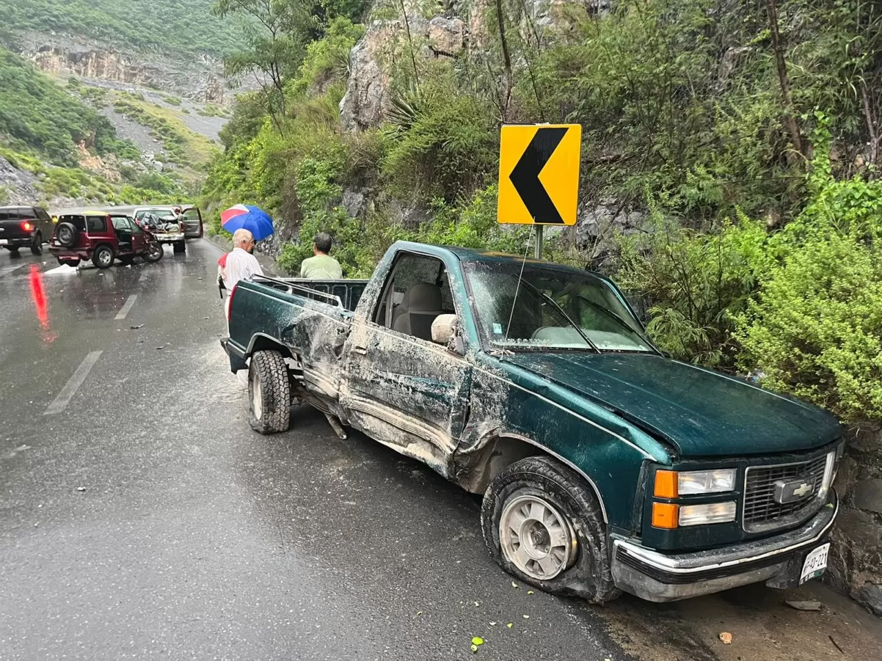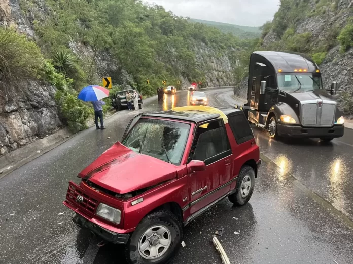 Presuntamente la camioneta tomó una curva a exceso de velocidad, pero por el pavimento mojado derrapó y chocó contra el Traker.