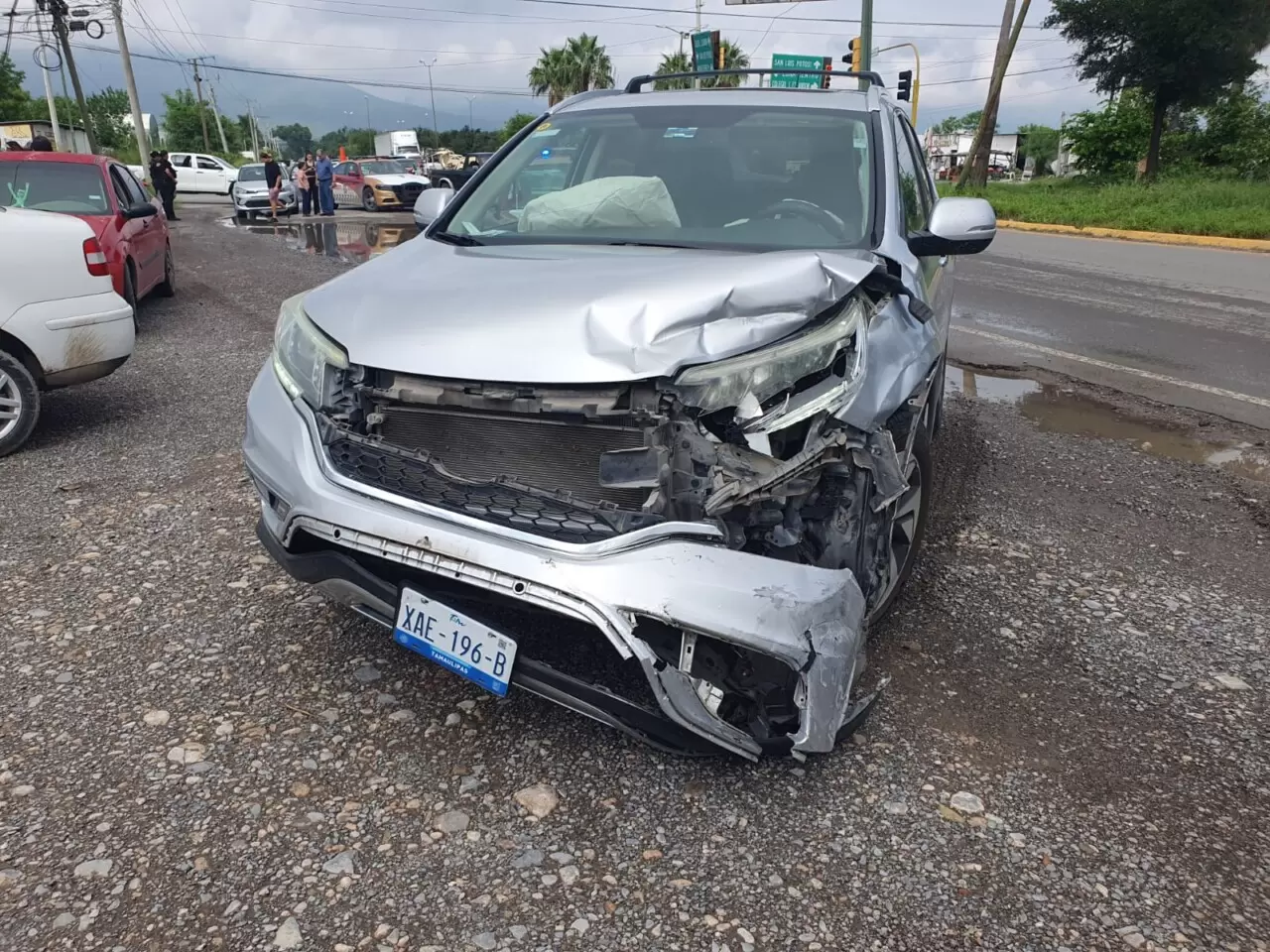 Miles de pesos daños materiales dejó como saldo un aparatoso choque en el cruce del libramiento Naciones Unidas con Norberto Treviño Zapata, conocido como la calle 16.
