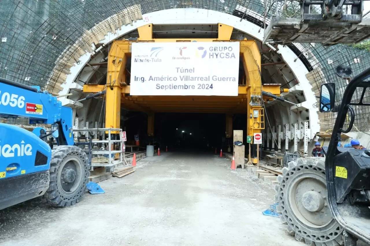 La tarde de este miércoles, el gobernador, acompañado por Alejandro Calzada Pratz, director general del Grupo Hycsa, y Ramón Alonso Casanova Hernández, CFO y CEO de Grupo Hycsa, caminó en el interior del túnel de 1,815 metros de longitud, el cuarto más largo de una autopista en México y único que se construyó en el gobierno de Andrés Manuel López Obrador, el cual lleva el nombre del exgobernador Américo Villarreal Guerra, para presenciar cómo dos máquinas excavadoras derribaron la pared de roca, logrando la interconexión, luego de varios meses de trabajo.