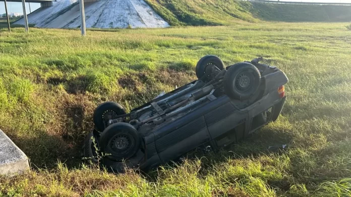 Al llegar al lugar de los hechos visualizaron una camioneta con las cuatro llantas hacia arriba, sobre la orilla del césped, no obstruyendo la vialidad.