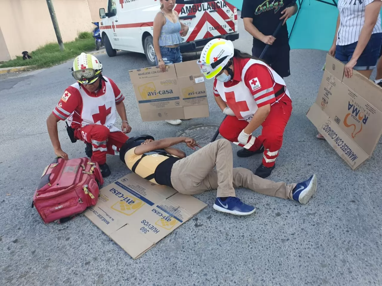 Paramédicos de Cruz Roja Mexicana le dieron los primeros auxilios al motociclista para posteriormente trasladarlo a un hospital.