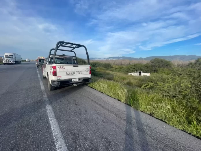 Elementos de la Guardia Nacional (GN) y servicios periciales arribaron para realizar el levantamiento del cuerpo y encargarse del accidente.