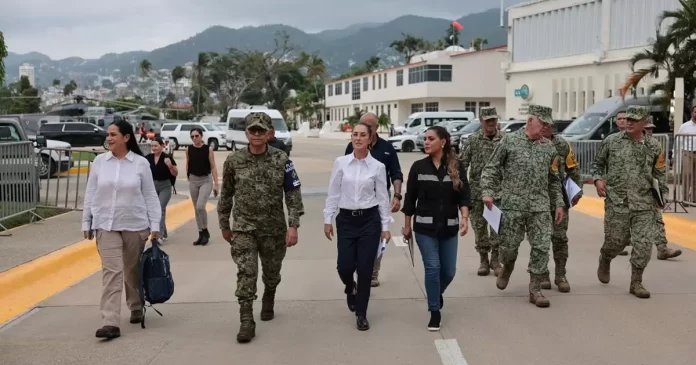 La presidenta Claudia Sheinbaum encabezó en la Base Naval de Acapulco una reunión para evaluar los daños provocados por el huracán “John”.