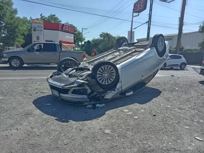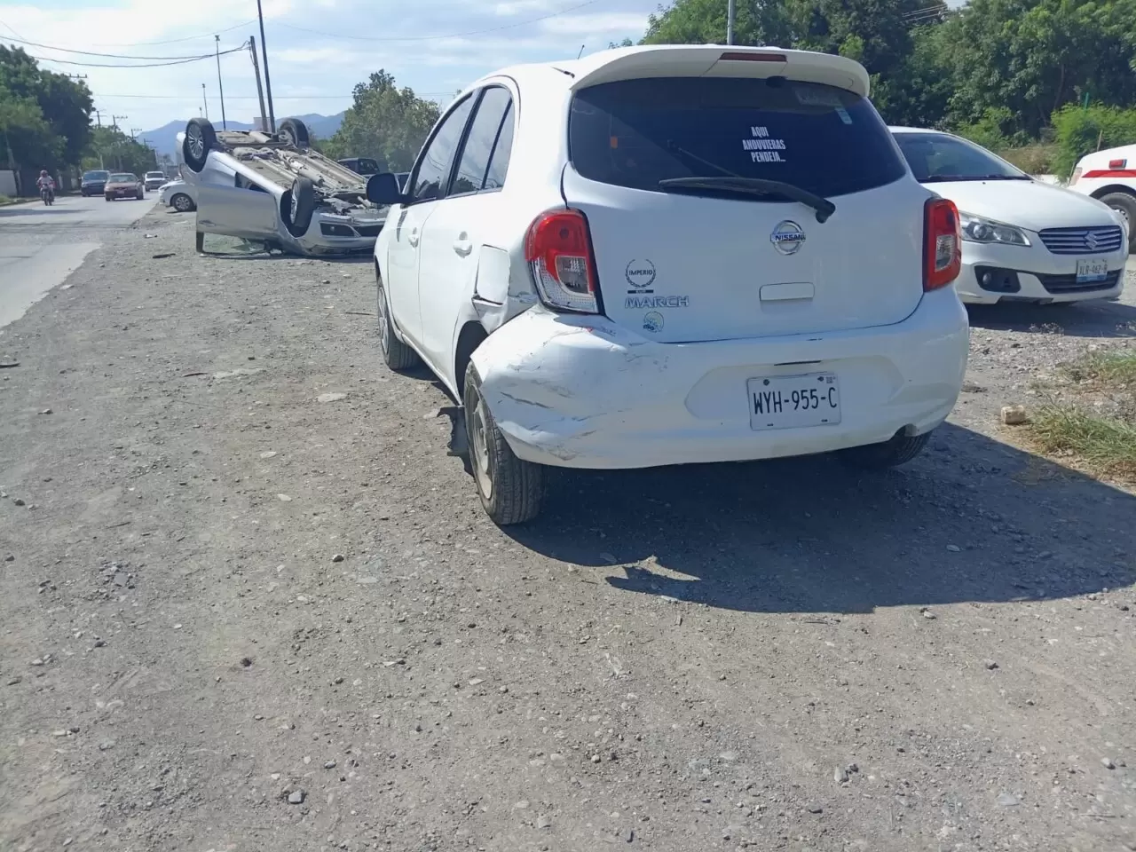 Miles de pesos en daños materiales y afortunadamente ninguna persona lesionada de gravedad, fue el saldo de un choque con volcadura ocurrido en el eje vial con calle Michoacán.