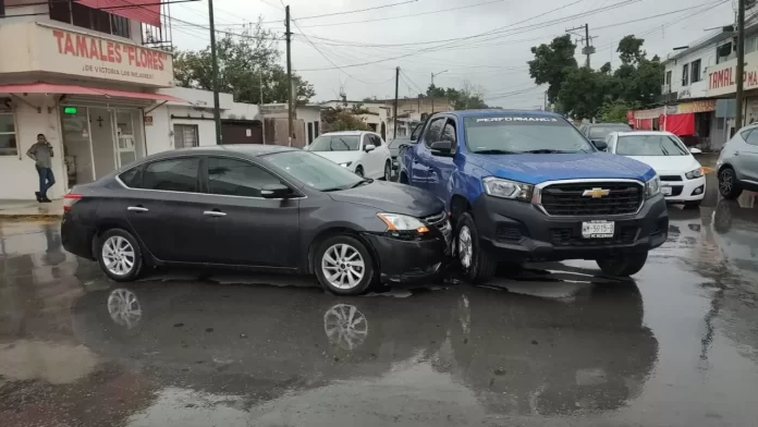 Daños materiales dejó como saldo un choque registrado en la zona centro de Victoria participó un automóvil y una camioneta tipo Pick up.