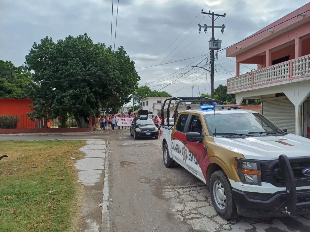 Los elementos policiacos brindaron seguridad vial durante la caminata, que contó con la participación de docentes, alumnos y padres de familia.