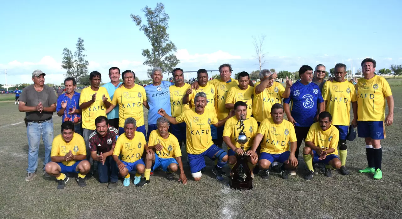 Directivos de la Liga de Veteranos entregaron bonitos trofeos al campeón y subcampeón de liga.