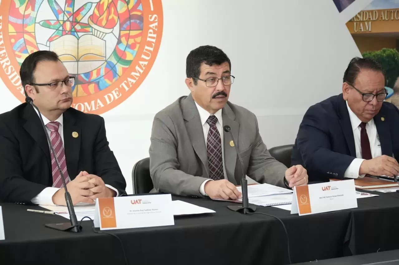La Octava Reunión del Colegio de Directores de la UAT tuvo por sede la Facultad de Ingeniería y Ciencias, y en ese contexto, el titular de ese plantel, Vicente Paul Saldívar Alonso, expuso las fortalezas de su institución, destacando el crecimiento en matrícula de licenciatura y posgrado y el incremento de docentes en el Sistema Nacional de Investigadoras e Investigadores.