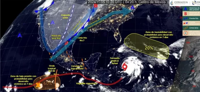 Cabe señalar que el Servicio Meteorológico Nacional señaló que en siete días, se prevé la formación de una zona de baja presión que podría generar un ciclón tropical en el Mar Caribe.