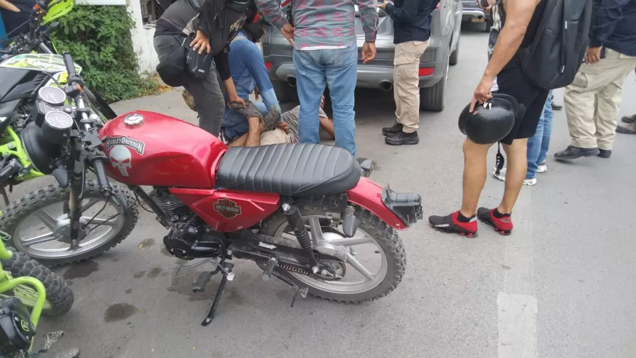 Un conductor que provocó un accidente y luego se dio a la fuga metiéndose en contra por varias calles, fue detenido nada más y nada menos que por repartidores que andaban a bordo de motocicletas.