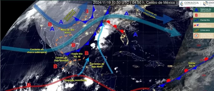 El Servicio Meteorológico Nacional informó que este día, el frente frío número diez se desplazará sobre el noreste, oriente y gradualmente el sureste del país.
