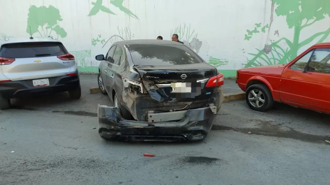 Después de «rebotar» contra el automóvil Nissan el motociclista salió proyectado y terminó abajo de la parte posterior de una camioneta tipo pick up que también estaba estacionada afuera del Zoológico.