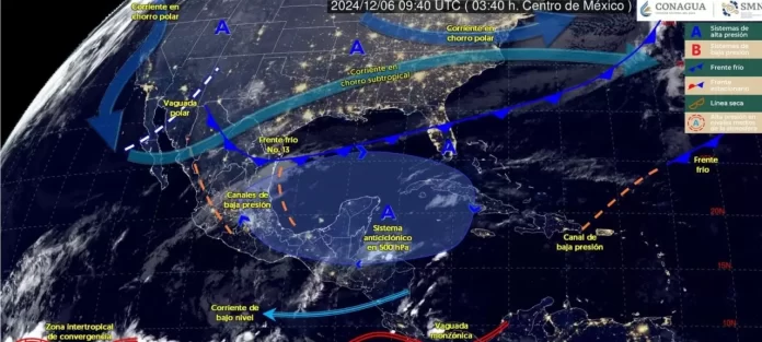 Por su parte, el ingreso de humedad del Océano Pacífico y Mar Caribe propiciará lluvias e intervalos de chubascos en zonas del occidente, centro, sur y sureste del país, incluido el valle de México.