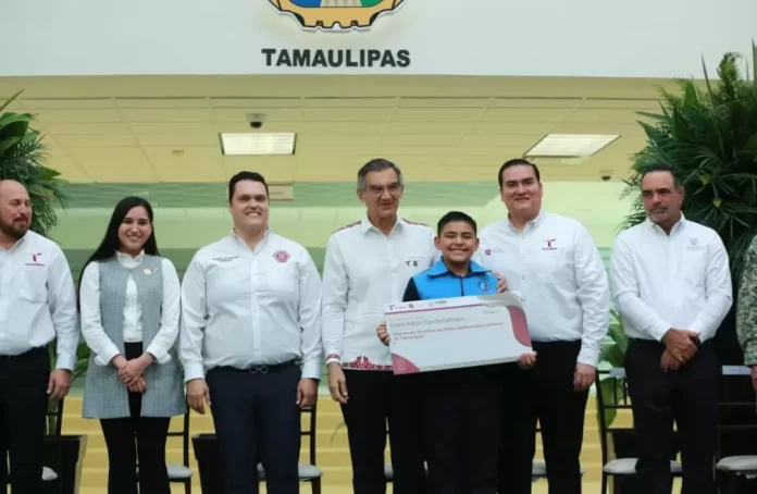 A nombre de las y los alumnos beneficiados con una beca, la niña Teresa Sarahí Torres Rodríguez, estudiante de cuarto año de la escuela primaria Ejército Mexicano, agradeció al gobernador el apoyo en favor de la educación de las niñas y niños de Tamaulipas.