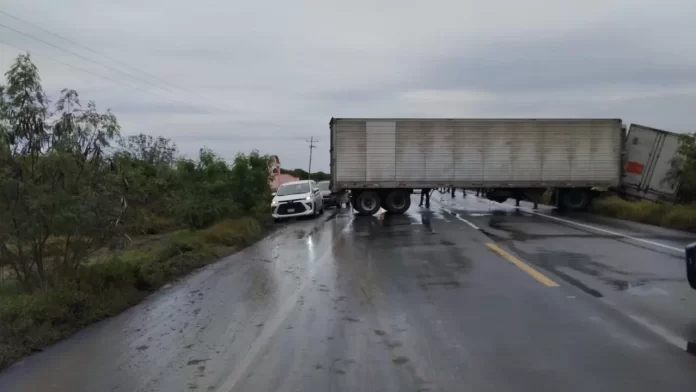 En el accidente participó un tráiler doble remolque, que obstruye ambos carriles.