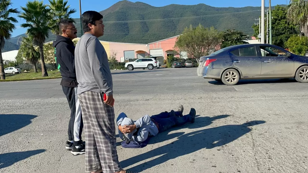 A la altura de la calle Villa de Llera, un automóvil Chevrolet tipo Aveo le cerró el paso al motociclista.