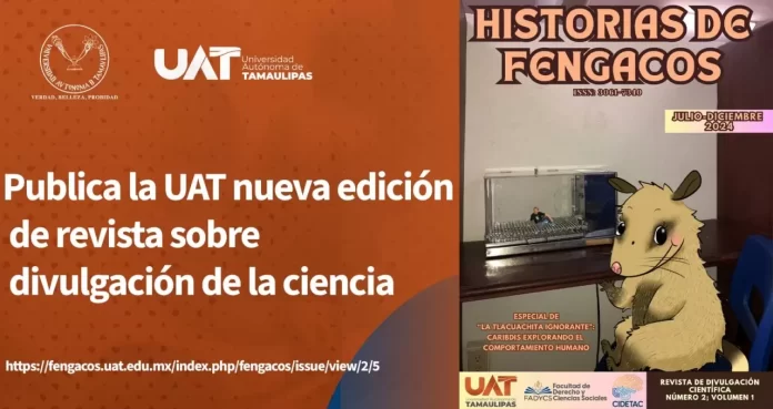 La Facultad de Derecho y Ciencias Sociales Tampico de la Universidad Autónoma de Tamaulipas (UAT), junto con el Centro de Investigación y Desarrollo Tecnológico Aplicado al Comportamiento (CIDETAC), lanzó el más reciente número de su revista de divulgación científica “Historias de FENGACOS”.