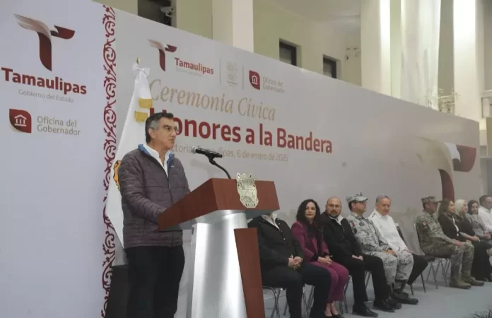 Al presidir la primera ceremonia cívica de honores de 2025, en la explanada central de Palacio de Gobierno, el mandatario tamaulipeco llamó a las y los servidores públicos a trabajar en una agenda humanista, con gran ahínco y dedicación, para seguir transformando a Tamaulipas.