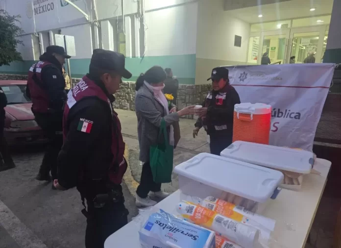 Ciudad Victoria, Tamaulipas. – Tras la activación del Plan Tamaulipas por las bajas temperaturas presentes en varios municipios de la entidad, personal de la Guardia Estatal de Género visitó diferentes hospitales de Ciudad Victoria para proporcional alimentos y bebidas calientes a las familias que se encuentran esperando en estos sitios.