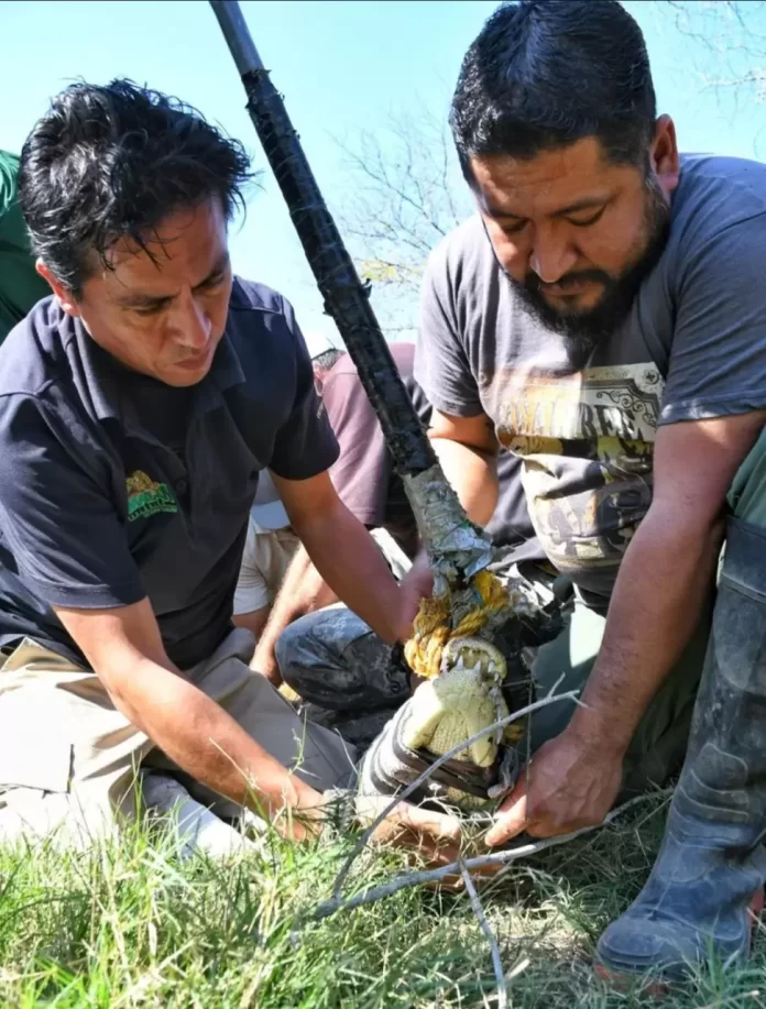 Ciudad Victoria, Tamaulipas.- Personal de la Comisión de Parques y Biodiversidad de Tamaulipas (CPBT) rescató un cocodrilo, que fue reportado por los pobladores del ejido El Olmo de Ciudad Victoria.