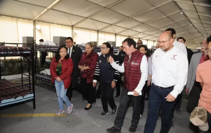 Tras recorrer el Centro de Atención a Migrantes, habilitado en la explanada del Parque Cultural de esta ciudad, Rodríguez Velázquez afirmó que, por instrucciones de la presidenta Claudia Sheinbaum, se ha realizado un despliegue como parte de la estrategia “México Te Abraza” para recibir a los connacionales con la mejor atención posible antes de que sigan su camino a sus comunidades de origen.