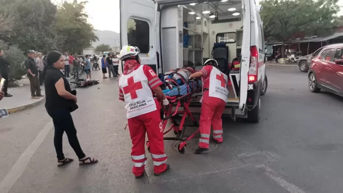 Paramédicos de Cruz Roja Mexicana acudieron al lugar para valorar al motociclista, al cual trasladaron a un centro hospitalario después de inmovilizarlo en una camilla.