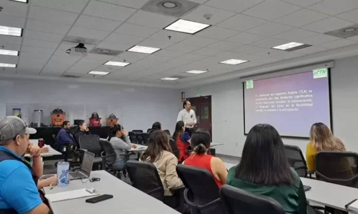 Reynosa, Tamaulipas.– La Universidad Tecnológica de Tamaulipas Norte (UTTN), a través del Departamento de Inclusión y Equidad Educativa, impartió la conferencia “Estrategias de Atención para Personas con Trastornos del Espectro Autista (TEA)” al personal de la empresa Emerson, informó su rector, Edgar Garza Hernández.