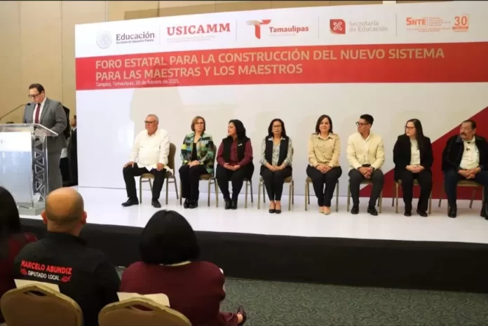 Tampico, Tamaulipas.– Con el objetivo de ser un espacio de diálogo, intercambio de ideas y propuestas para mejorar el sistema nacional para la carrera de las y los profesores, se realizó en Tamaulipas el “Foro Estatal para la Construcción del Nuevo Sistema para las Maestras y los Maestros”.