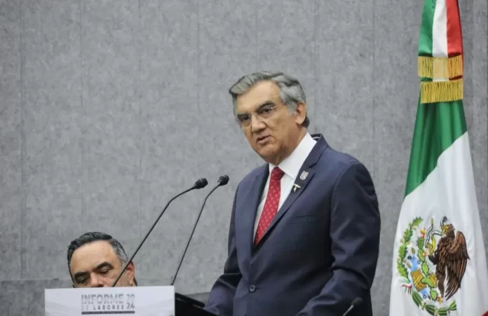 Al asistir a la ceremonia solemne en la que el magistrado presidente del Supremo Tribunal de Justicia y del Consejo de la Judicatura, Hernán De la Garza Tamez, rindió el informe de labores 2024 del Poder Judicial de Tamaulipas, el gobernador exhortó a las y los tamaulipecos a participar y difundir las cualidades positivas y la importancia del carácter histórico de la reforma judicial.