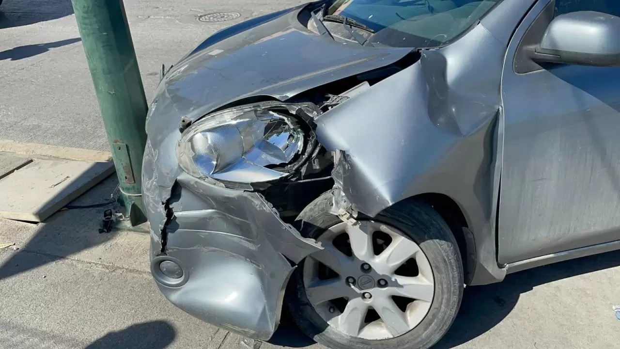 Finalmente, a la altura de la calle artículo 27 de la colonia Lázaro Cárdenas, el automóvil March detuvo su marcha al estrellarse de manera frontal contra un poste de metálico de alumbrado público.