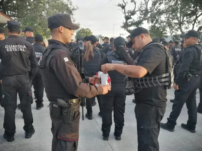 Altamira, Tamaulipas.- Al ser el humanismo uno de los principios fundamentales en el actuar de la Guardia Estatal, personal de la Delegación Regional Zona Sur se sumó a la Colecta Nacional “México Dona” de la Cruz Roja Mexicana.