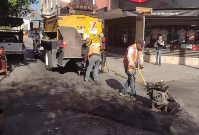 Cd. Victoria 19 de marzo 2025. – Como parte del trabajo que realiza el Gobierno de Victoria para mejorar la imagen urbana de la ciudad, la Secretaría de Obras Públicas del Municipio intensificó este día trabajos de bacheo en calles de la zona centro.