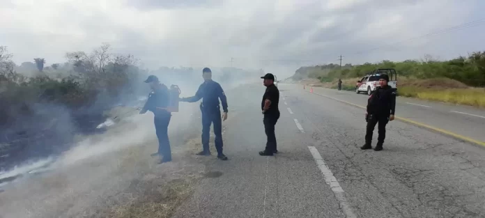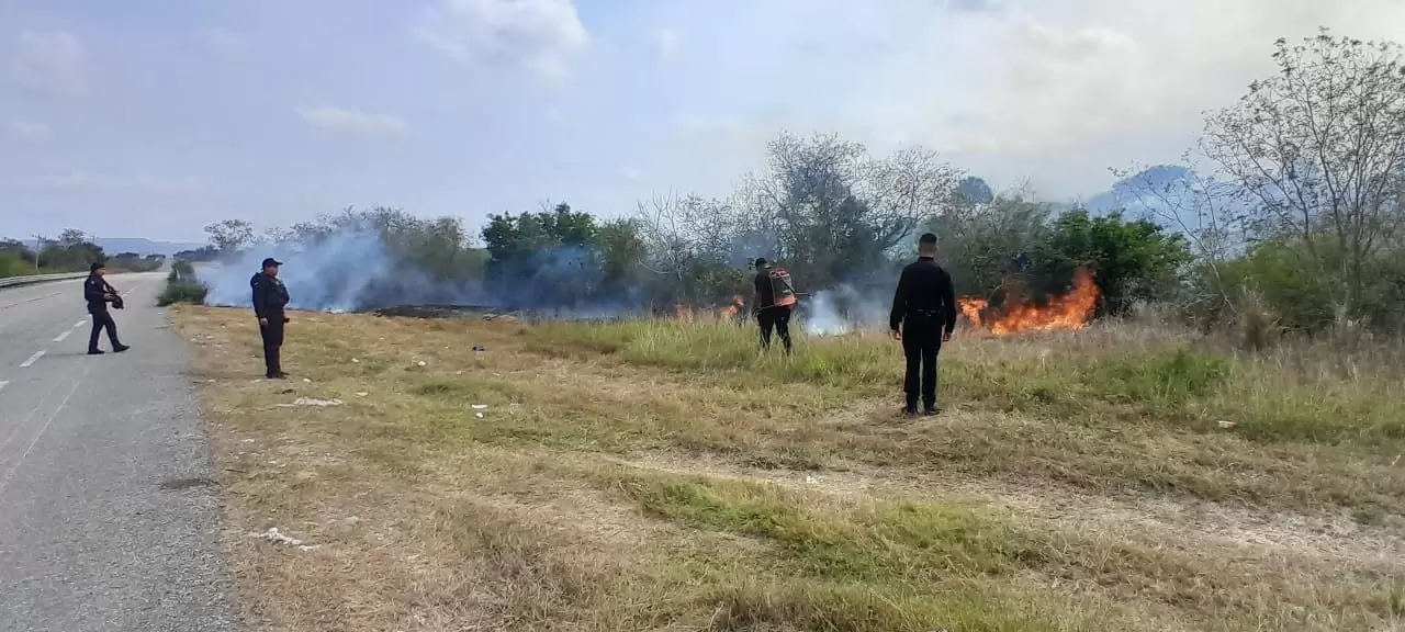 Los oficiales utilizaron mochilas con agua para contener las llamas mientras se solicitaba apoyo a Protección Civil de Soto la Marina, cuyo equipo arribó para sofocar las llamas.