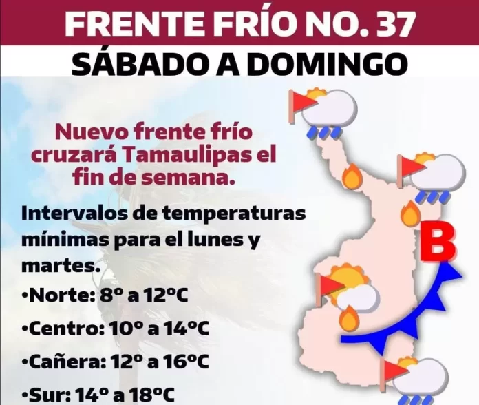 CIUDAD VICTORIA. – Con temperaturas mínimas de hasta ocho grados Centígrados para la frontera norte del estado, un nuevo frente frío cruzará Tamaulipas de sábado a domingo; informó Protección Civil Tamaulipas.
