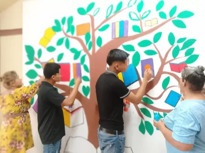 Reynosa, Tamaulipas.- Adolescentes en conflicto con la Ley Penal en el municipio de Reynosa crearon el mural ‘’El árbol de los libros’’, como parte de la estrategia de reinserción social que tiene a la cultura como eje fundamental.