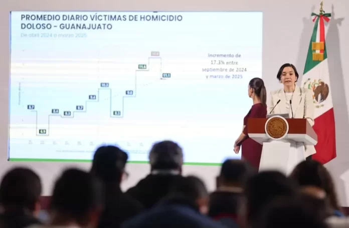 Señaló que entre septiembre de 2024 y marzo de 2025, en el promedio diario de víctimas de homicidio doloso, la reducción observada representa una disminución de 14 por ciento en los primeros seis meses de la actual administración.