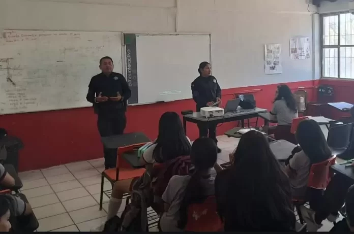 Ciudad Victoria, Tamaulipas.- A través de la proximidad y la información, personal de la Guardia Estatal de Género, previene las adicciones y el acoso escolar entre adolescentes que se encuentran estudiando el nivel básico.