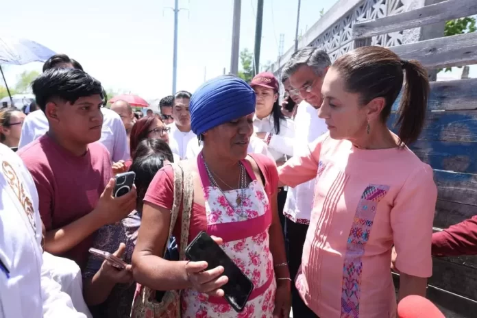 Acompañada del gobernador, Américo Villarreal la Presidenta explicó que las personas que recibirán apoyo deberán formar parte de un censo y en caso de no estar registradas, personal del Gobierno de México acudirán a su domicilio para anotarlas.