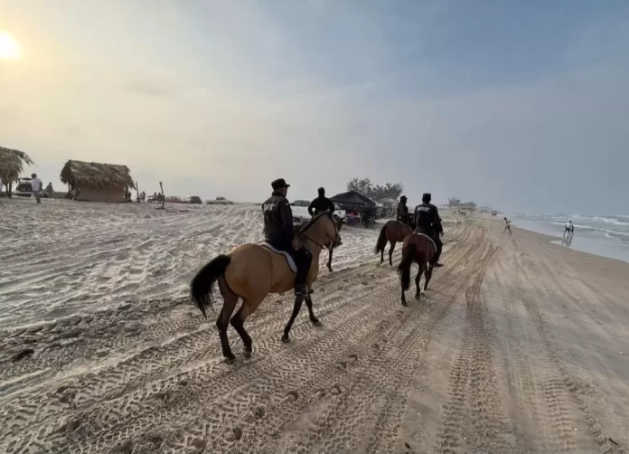 Soto la Marina, Tamaulipas.- Como parte del Operativo Semana Santa Segura, personal del Agrupamiento Montado de la Guardia Estatal mantiene la presencia y vigilancia en La Pesca.