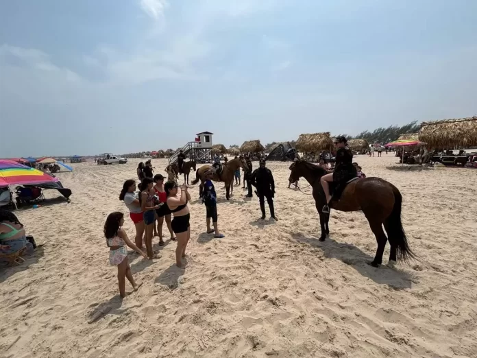 Soto la Marina, Tamaulipas.- Como parte de las acciones realizadas por el personal del Agrupamiento Montado de la Guardia Estatal durante las celebraciones de Semana Santa, se mantiene la proximidad en La Pesca.