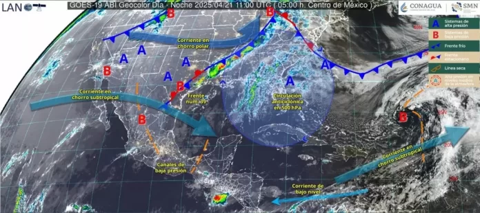 CIUDAD VICTORIA. – Hoy lunes, el frente número 39 se extenderá con características de estacionario sobre el noreste del país, en interacción con un canal de baja presión sobre el norte de México y la corriente en chorro subtropical, ocasionarán lluvias puntuales fuertes en Tamaulipas, informó el Servicio Meteorológico Nacional.