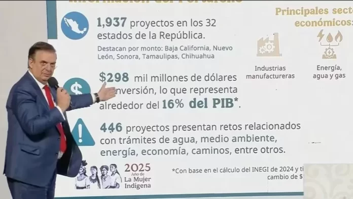 Este jueves el secretario de Economía, Marcelo Ebrard dio a conocer el status del portafolio en el cual se identificaron 1,937 proyectos, los cuales representan 298 mil millones de dólares. «Por sus montos destacan las inversiones en Baja California, Nuevo León, Sonora, Tamaulipas y Chihuahua, aunque existen proyectos en marcha en las 32 entidades del país», indicó.