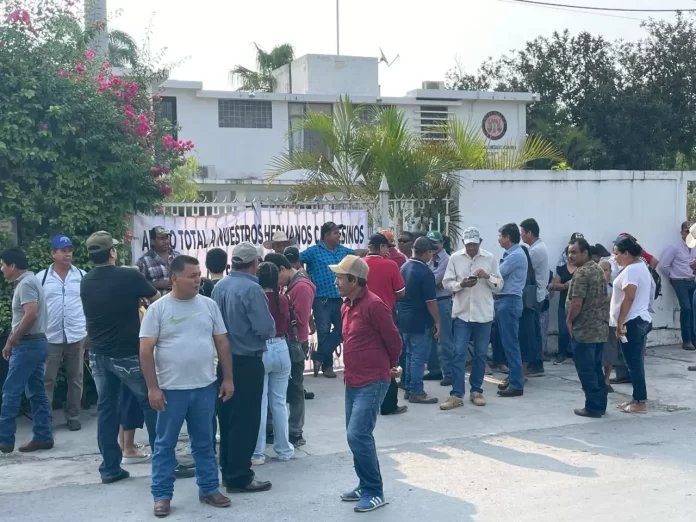 “Apoyo total a nuestros hermanos campesinos del sur de Tamaulipas, justicia no será pronta y expedida cuando se suman los expedientes de un tribunal a otro”, se manifiesta en una lona colocada en el acceso al Tribunal que se encuentra sobre la calle Ocho o Bulevar Tamaulipas y Primera Diagonal.